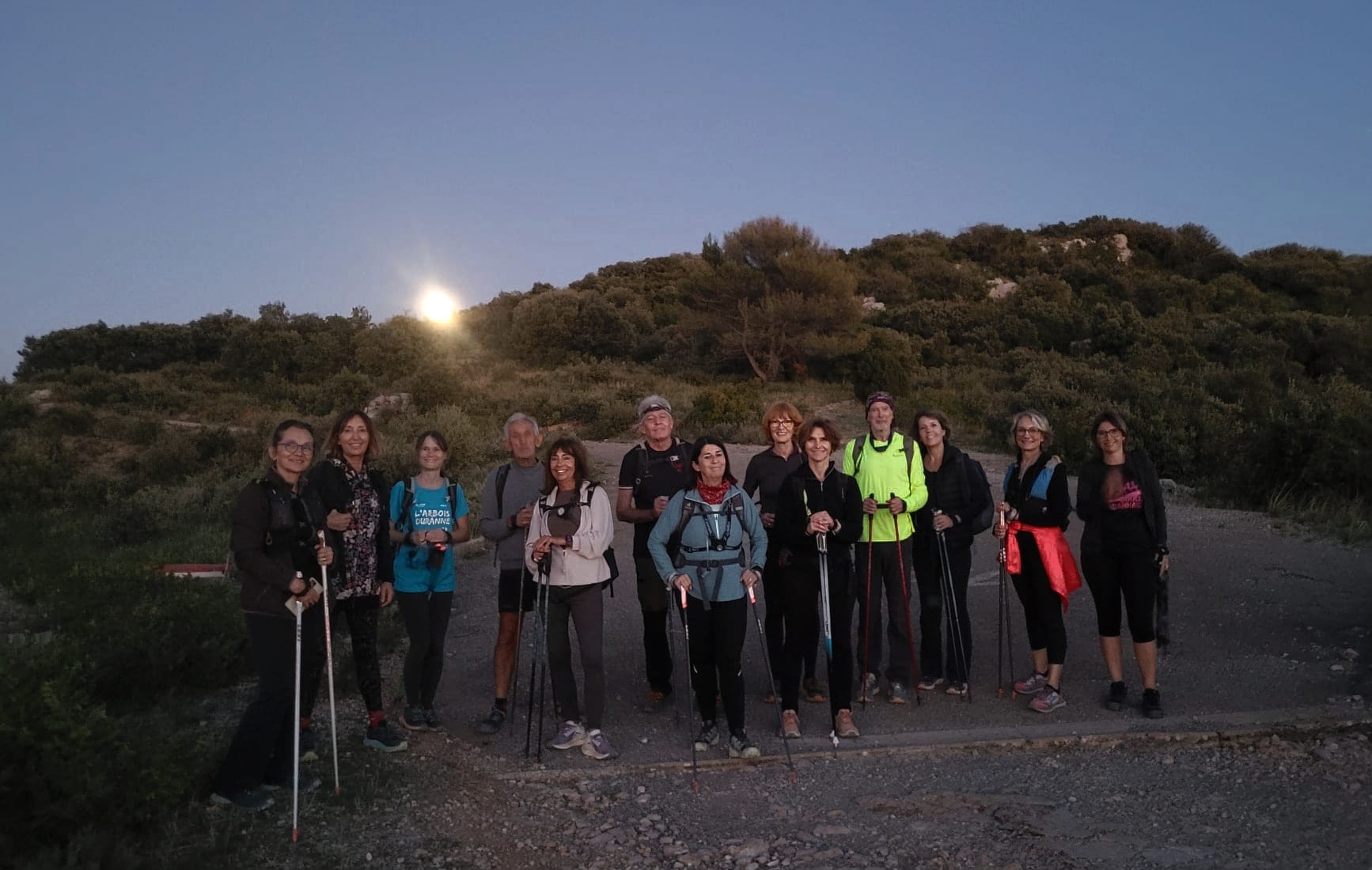 La nuit, tous nos sens sont en éveil et notre perception de l’environnement est différente : les odeurs de la végétation sont accrues, le silence est apaisant. Quelquefois, nos sorties correspondent à un coucher de soleil et nous savourons les couleurs chatoyantes du ciel. Une autre fois, nous marchons éclairés par la pleine lune. Et souvent, dans notre ciel de Provence nous pouvons nous connecter à la magie d’un ciel étoilé commenté par René, un passionné des étoiles.